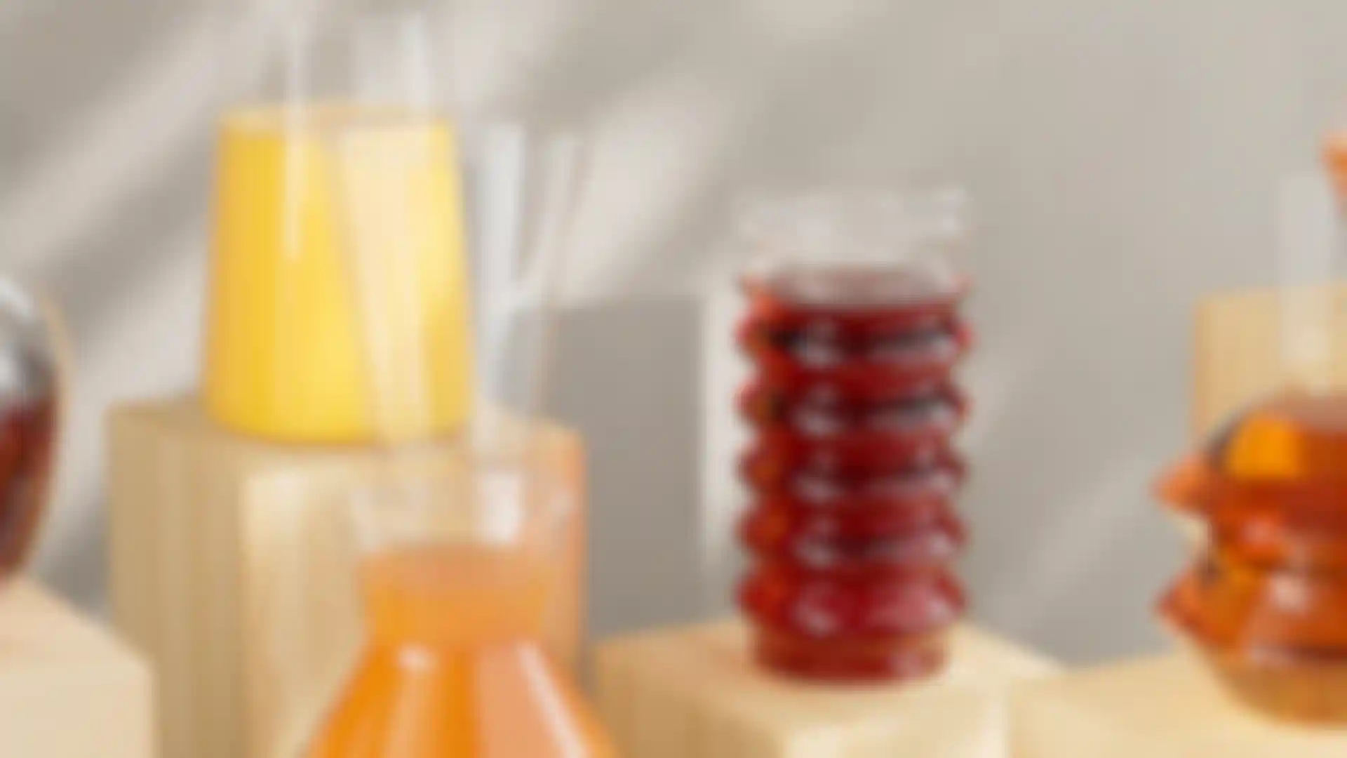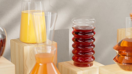 Golay: Die Arbeit mit Flüssigkeiten und transparenten Texturen wie Glas ist immer eine Herausforderung. Wir haben verschiedene einzigartige Karaffen entworfen, um ein elegantes Getränkedisplay zu simulieren. Wir erinnerten uns an eine der Schwerkraft trotzende Skulptur aus gestapelten Steinen, die uns dazu inspirierte, unser eigenes skulpturales Display mit geometrischen Formen zu entwerfen, die Steinmustern ähneln.