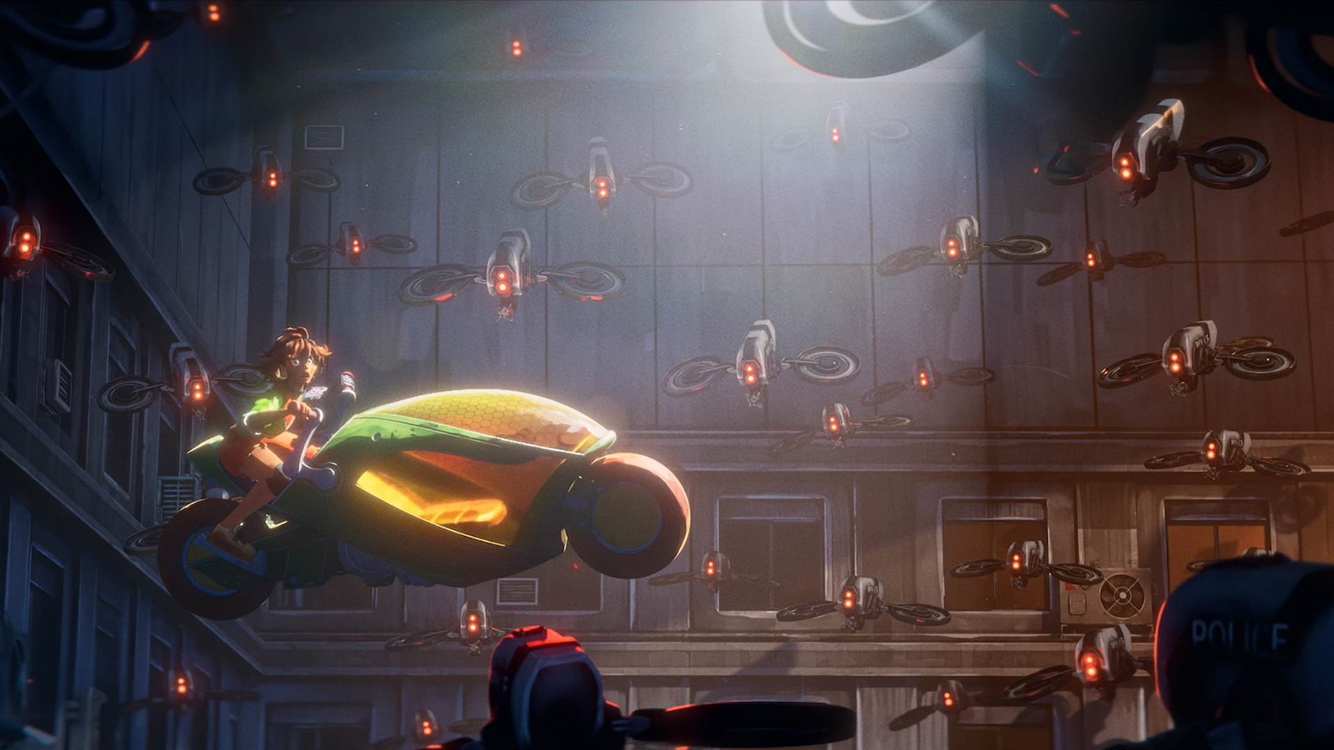 Theorin: The story for “Rush Order” came from the combination of ideas and technical requirements we had to meet. We had just over five weeks to complete the short, which meant we had to think about how we could design a film around this challenge. With that in mind, I immediately thought of a high-speed chase through the city streets. Not only did it significantly cut down on character animation, but it also gave us something much easier to animate without sacrificing visual flair.