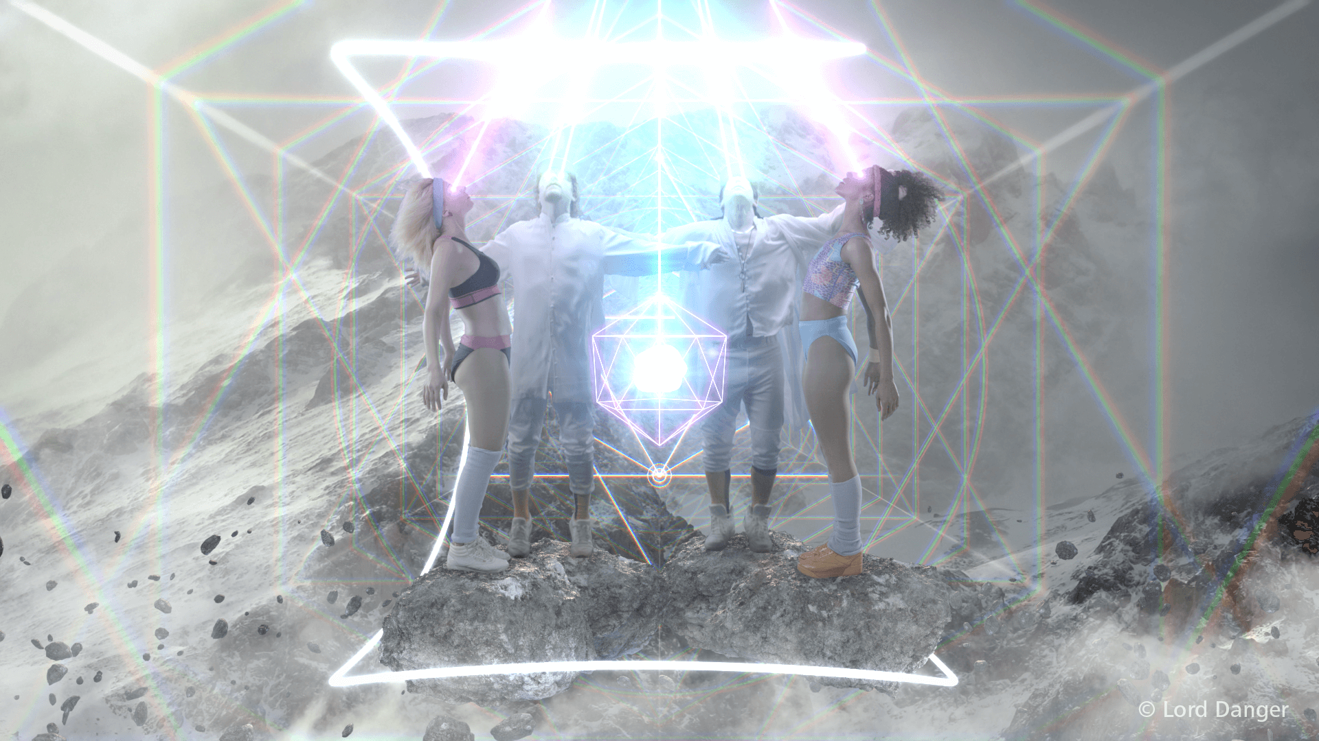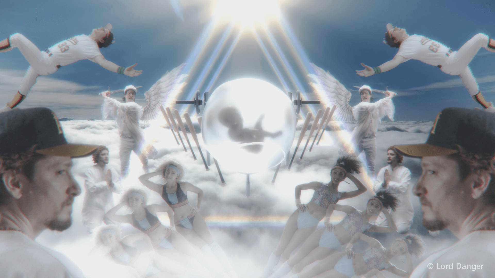 Nick DenBoer: I did some compositing and animation on a couple of sequences in “Bikini Babe Workout.” One of them was a bunch of floating rocks where you see the four of them standing together in a formation that somehow creates a four-parent-baseball baby. I also animated the baby in the floating bubble. The team at Lord Danger provided me with a pile of assets – 3D models, rotoscoped video clips and green screen footage. With Mike's direction, I built out the scenes, rendered various objects in Cinema 4D and composited it all together in After Effects.