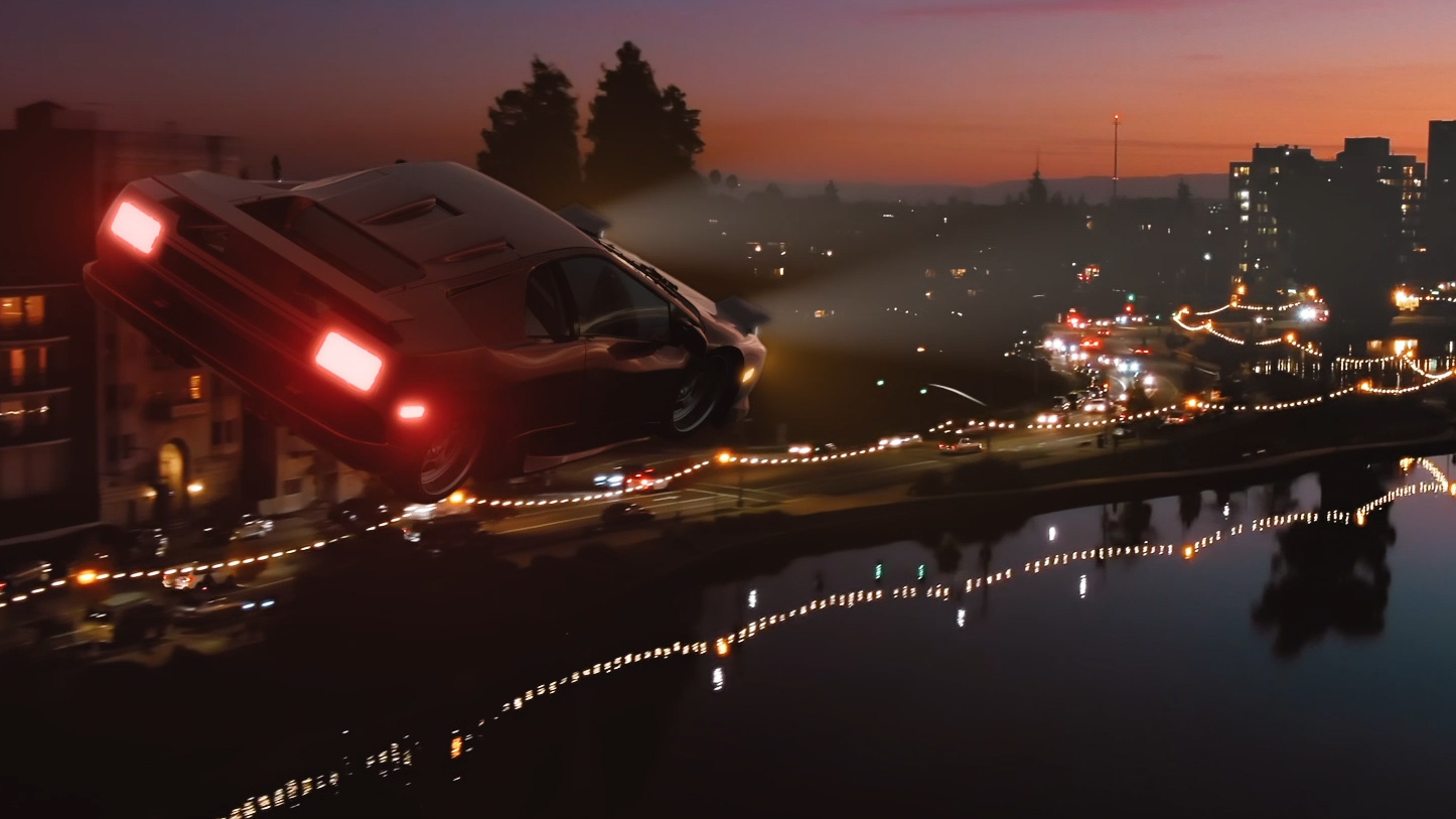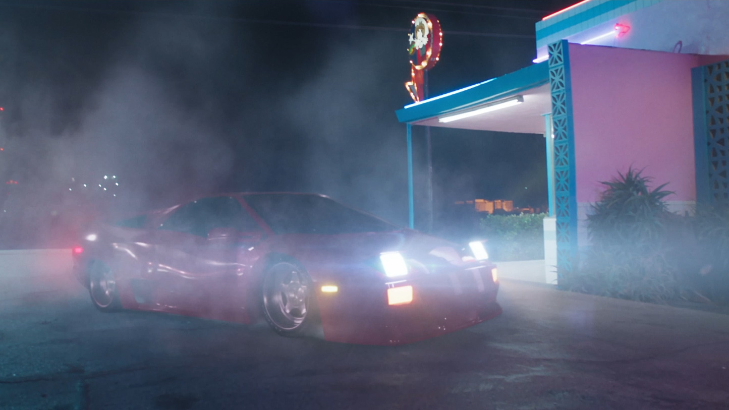 Josh Johnson: I worked on the intro, “Oakland Nights” and “IHOP Parking Lot”. Officially, I was credited as lead compositor, but I also did a lot of 3D work and some tracking. Essentially, I was a generalist, which is often my role on projects I work on. For the “IHOP Parking Lot” sequence I handled the shots where a car needed to fly and land. The Back to the Future-like landing shot was complex. I had to make a CG car that looked like the real car in the shot that follows. Simulations and photoreal cars are not normally things you would greenlight knowing you only had a matter of days to work. But this project was so exciting, everyone on it just wanted to do their best.