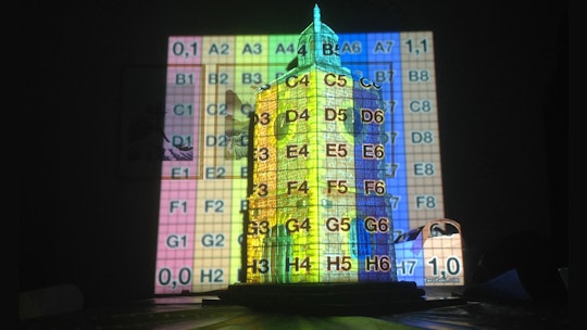 Cinema 4D was then used to create a bespoke UVW map from the 3D scan to take directly into MadMapper. Cinema 4D was also used to distort the 3D scan to compensate for projector lens distortion, as this cannot be done as yet in MadMapper.