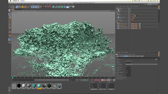 The simulation was then baked and converted to keyframes. The keyframes were then reduced and Alembic was used to export them to Realflow 2013 where the large boulders were used as collider objects for the fluids simulation. The meshes created in Realfow, which contained up to 25 million polygons, were then rendered in Cinema 4D together with the boulders and all the debris in the avalanche using the Physical Renderer in Cinema 4D. Final compositing was done in Nuke.
