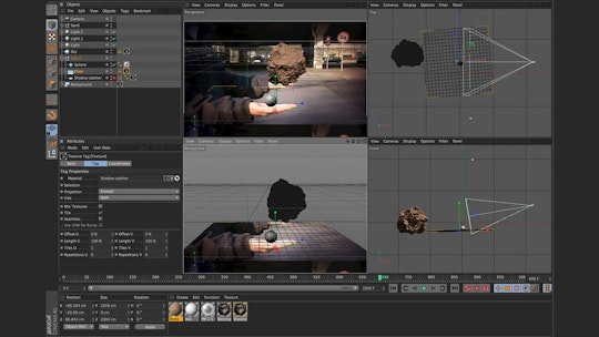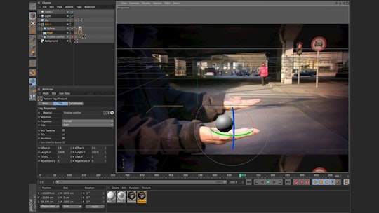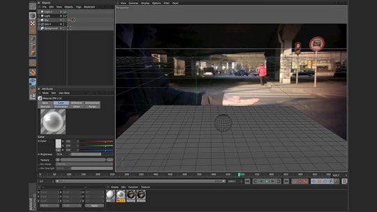Sophia usó el objeto Sol de Cinema 4D para iluminar la escena, con una luz separada para destacar partes del cristal y las esferas. "La secuencia de la toma tenia sombras duras," explica, "así que esto me dio una indicación aproximada de la hora del día. Jugué un poco con los ajustes de hora y fecha hasta que tuve una escena que más o menos coincidiera con el material suministrado."