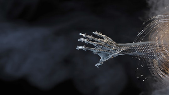 En un momento, una mano se asusta misteriosamente desde una espiral caótica y enrojecida. Foster manipuló un objeto de mano creado por Abbott para realizar la toma, y luego lo animó a mano para obtener el movimiento correcto. Pensando en ello ahora, dice que habría hecho que el caos del vidrio fuera mucho más etéreo y enérgico, en lugar de tan sólido, si tuviera que hacerlo de nuevo. Utilizó X-Particles con su generador VDB, Explosia, para obtener el efecto suave y ahumado que se extiende por encima de todo, lo que sugiere algún tipo de creación o nacimiento. La última toma espeluznante de Talos presenta un centinela biomecánico, los hombros agitados por la respiración profunda, vigilando la megaestructura. Para ahorrar tiempo, Swordfish creó el personaje usando un modelo 3D que compraron en TurboSquid y lo trajo a la vida con Mixamo.