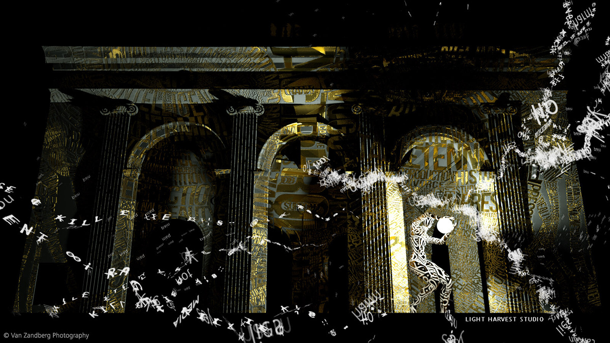 Pulling together 3D projection-mapped animated stories that will be shown on sizable buildings is no easy feat. The motivating factor for artists, Rubenstein says, is the chance to work on ideas that have often been percolating for years. “This is art on an enormous scale, much bigger than an IMAX screen, and that’s so exciting for them, and for the crowd. The expressions on people’s faces as their watching are amazing.”