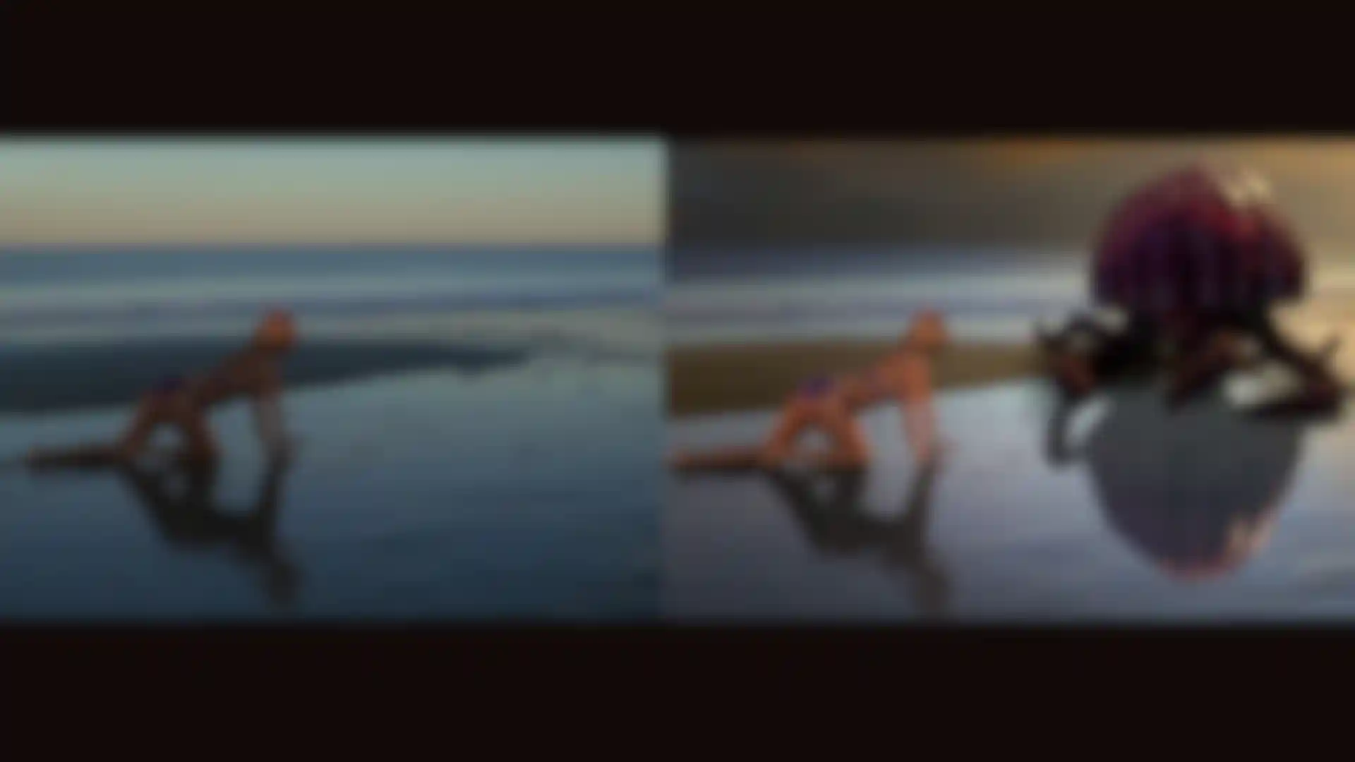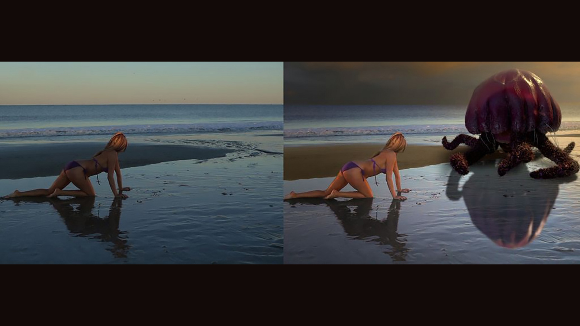 Patrick Longstreth a modélisé la méduse tueuse dans Cinema 4D et a réalisé des sculptures supplémentaires sur Zbrush. Pour créer un environnement entièrement numérique avec le mouvement d'une caméra 3D, des photos et des vidéos du ciel, du sable et de l'océan ont été projetées sur l'espace géométrique de Cinema 4D. Mais lorsqu'il a fallu réaliser le squelette (rig) d'un cycle complet de mouvements pour une créature composée de cinq tentacules, de fourrure, de longs poils filandreux et mettre en place des dynamiques pour son corps flasque, l'équipe a fait appel à Pryce Duncalf, animateur de personnages expérimenté.