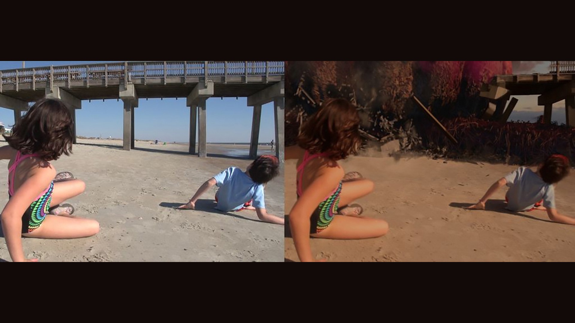 Pour la prise finale, durant laquelle la Méduse de l'enfer géante détruit la jetée de Tybee, ils ont recréé un modèle exact de la jetée dans Cinema 4D puis ont projeté une image de la vraie jetée sur le modèle 3D. Puisque l'interaction avec le personnage s'est avérée complexe pour une simulation de dynamiques complète, chaque partie de la jetée a été individuellement convertie en image clé. « Les déformateurs de Cinema 4D ont joué un rôle essentiel dans le processus d'animation, » explique Patrick Longstreth.
