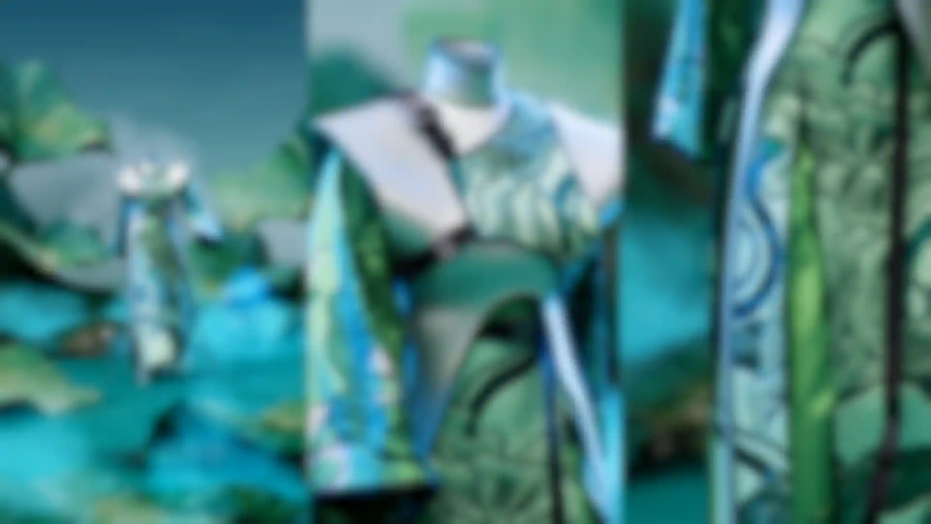 FungはProcreateで4つの衣装のコンセプトをすぐにビジュアル化しました。それぞれの衣装は神話の龍の色とディテールを取り入れています。彼女はDaz3DとCLO3Dを使ってアバターと衣装を作り、Substance Painterでテクスチャリングを行い、ZBrushでフェイスマスクを作成しました。