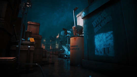 私たちは、倉庫を「インディ・ジョーンズ レイダース 失われたアーク《聖櫃》」のような雰囲気にしたいと思いましたが、もっと無造作な感じにしたかったので、そのためにいくつかのルックスを検討しました。C4DとRedshiftを使えば、すぐに最終イメージに近いレンダリングができるようになりました。倉庫に入れるものの膨大なリストを作成し、『ドクター・フー』に登場する泣き虫の天使の翼の一部や『メトロイド』に登場するサムスの船など、ファンならすぐにわかるようなものに絞り込んでいきました。