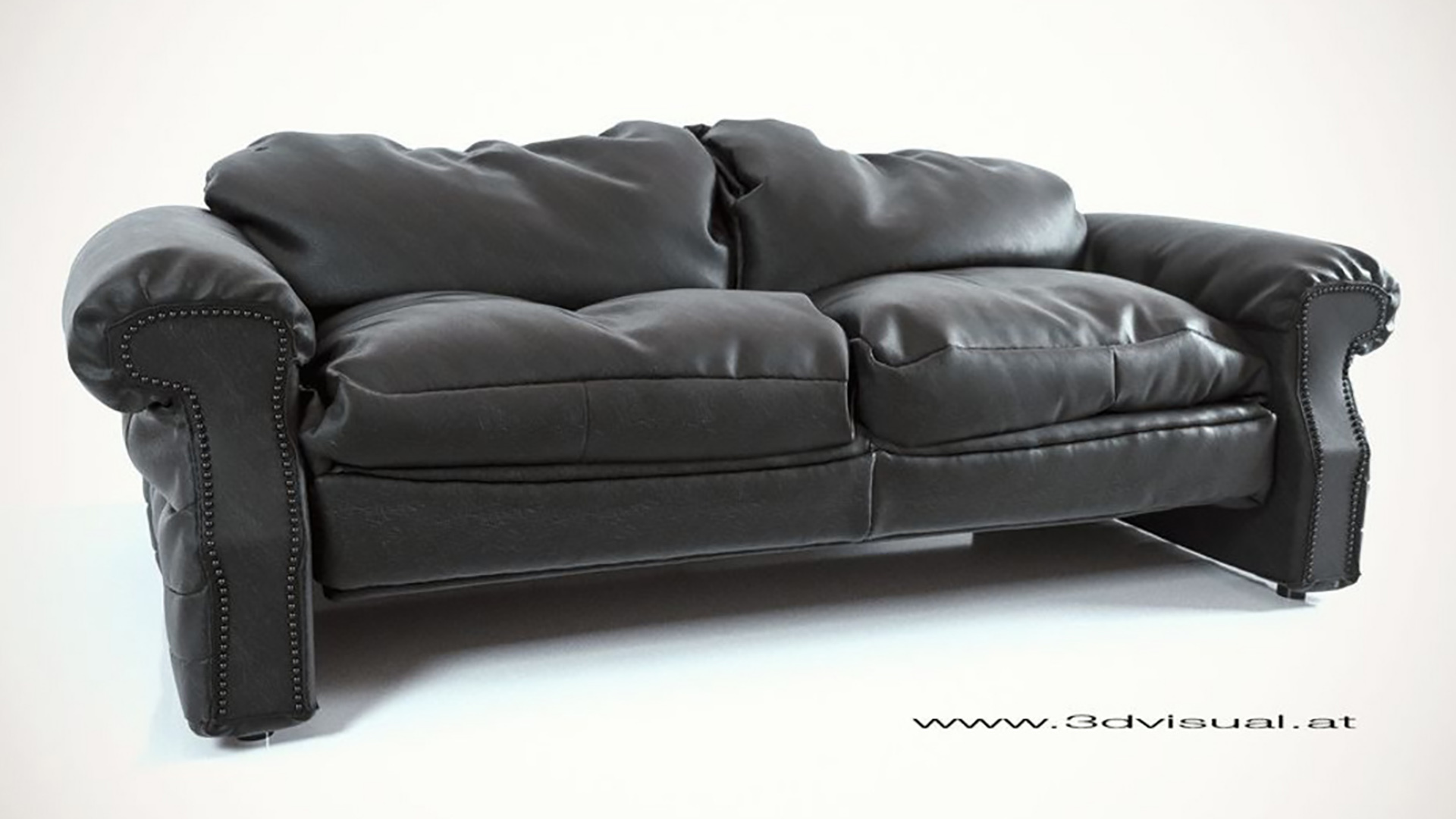 プロジェクトのメインは、ショールームに合わせた家具になります。クリストファーは標準的な骨格に対して、Cinema 4Dのクロスシミュレーション機能を使って革張りを行いました。クロスシミュレーション機能は、非常に正確で折り目も含め、自動で正しく革張りができたのです。Cinema 4Dのスカルプトツールは、ソファのステッチと細部の仕上げに使用しています。