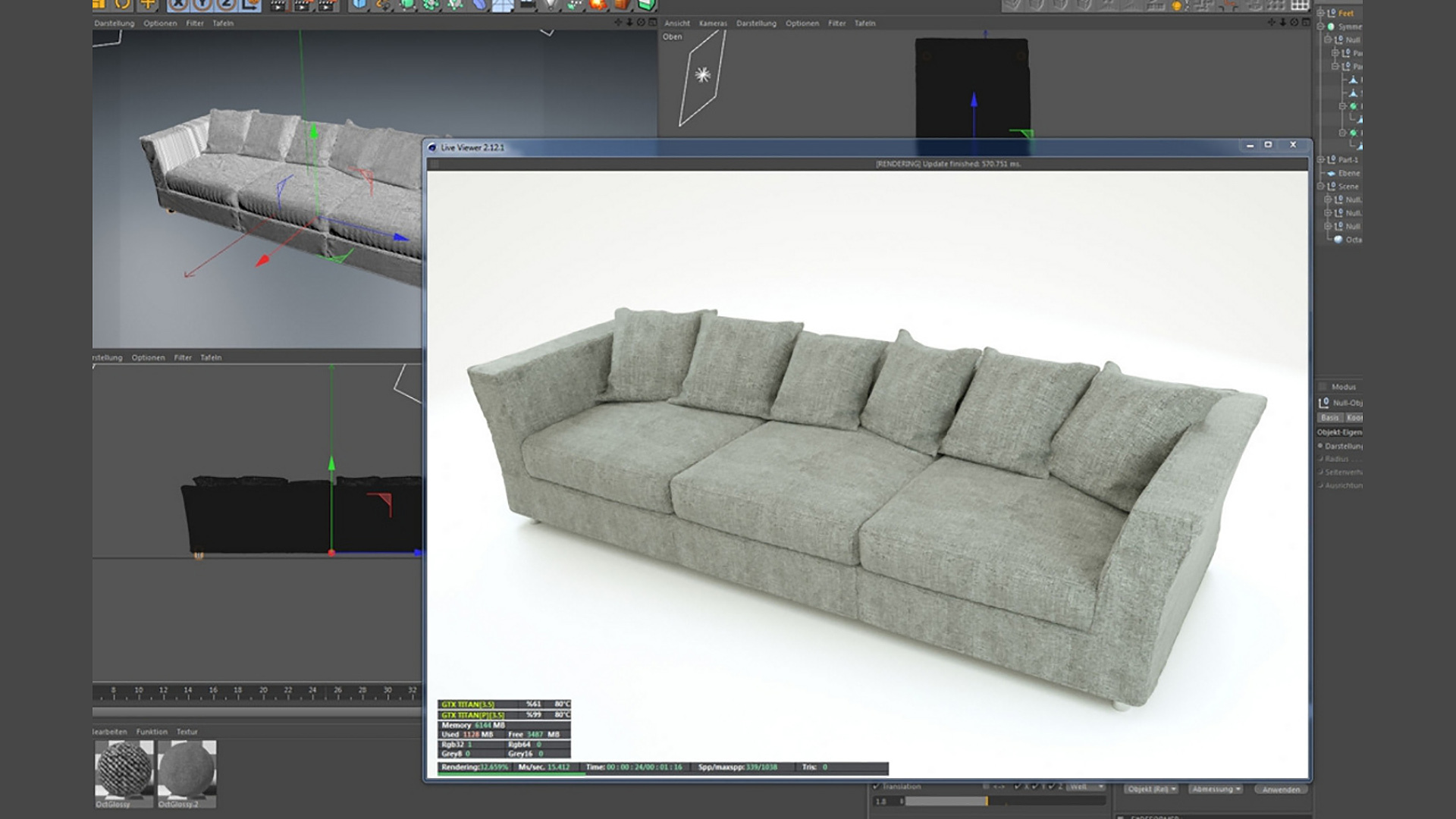 Cinema 4D と Octaneでバーチャルの革張り アーティスト兼、ビジュアライゼーション・スペシャリストとトレーナーであるクリストファー・シントラー氏は、難しいインテリアの装飾家具のビジュアライゼーションをCinema 4Dを使ったカスタムワークフローで実現。