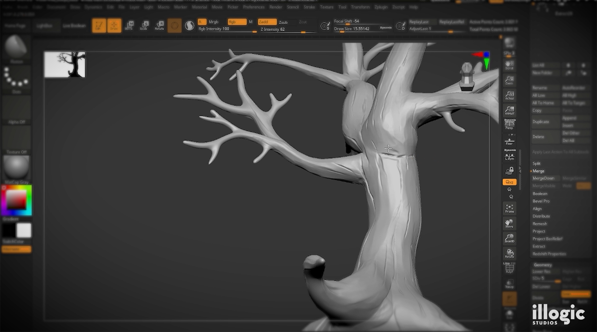 • The team used tools like Dynamesh, alternative smooth, and ZModeler, as well as brushes including Clay Buildup, Flatten, DamStandard, and Gio and Orb brush packs.