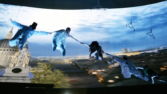 A dazzling flyover of Edwardian London gives audiences their first taste of the immersive CGI used throughout the threesixty˚ Theatre production of Peter Pan. To create the enormous cityscape, Dudley and O'Neill started with a map of London, circa 1900. "We mapped out a great big flight path, which included a number of very recognizable landmarks, including Big Ben, Buckingham Palace and Nelson's Column in Trafalgar Square." The primary concern was keeping a model of 400 square miles of London efficient enough to fit within the 16 gigabytes of RAM they had to work with and still deliver a level of detail that produced a believable experience. They pulled it off using Cinema 4D's robust polygon and HyperNurbs subdivision surface modeling tools as well as a lot of camera mapping. "Tower Bridge," O'Neill explains, "consists of basic geometry with a nicely lit nighttime photo of the Bridge mapped onto it and motion blur added to the final render."