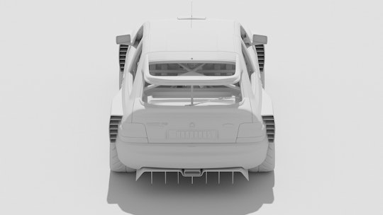 A.T.: After Ken and I were introduced, we started emailing about what to do. He said he was thinking of doing something with this old Ford Cosworth, and would I like to do something with the design on that. I said, ‘Absolutely!’ Ken would send me images of the car, and then I would start working in C4D doing what I call the clay renders. They were really rough, just early passes to start.
