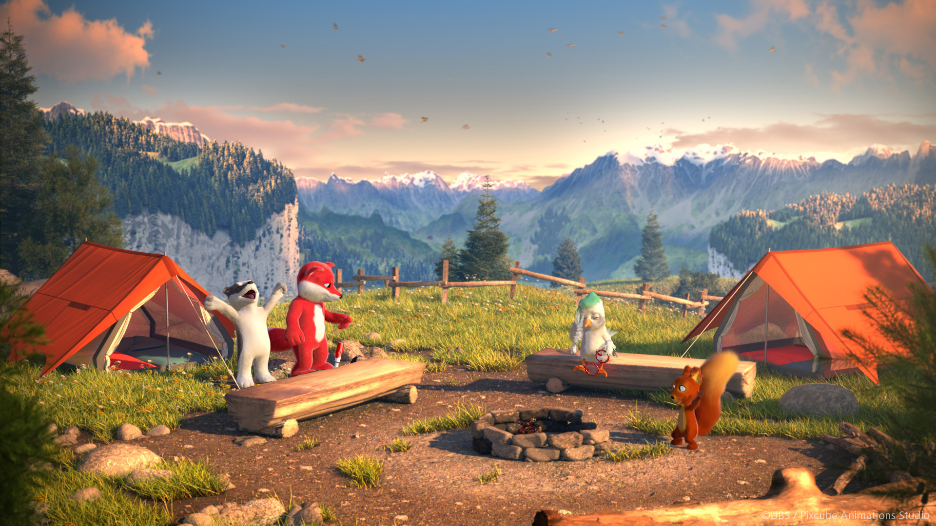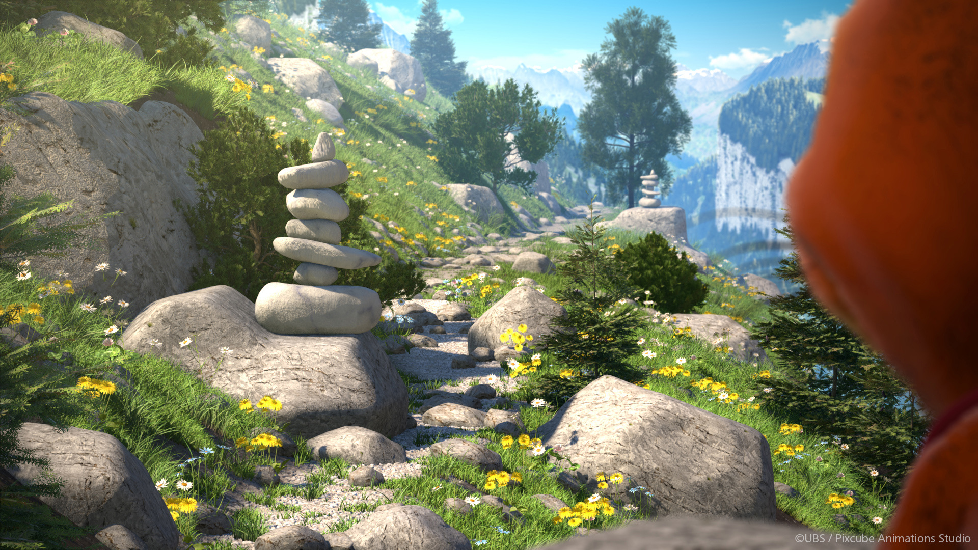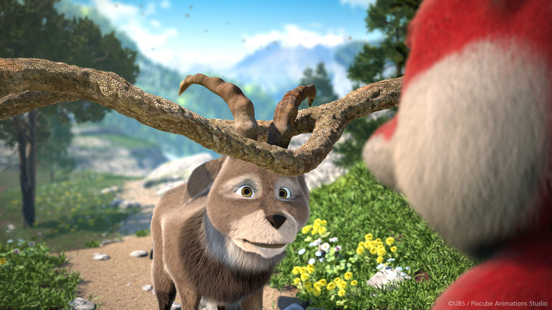In addition to all the characters, the surrounding scenery also had to be created, which had to be created in a characteristic “Swiss” look. This meant that mountains, slopes, forests and the characteristic houses and structures also had to be modeled in Cinema 4D. “We made quite liberal use of the MoGraph tools for the creation of the landscapes. Cloner objects, Effectors and render instances were essential elements for this phase. We used the Laubwerk plugin to create most of the vegetation and the Hair feature in Cinema 4D when it came to creating grasslands and pastures.”