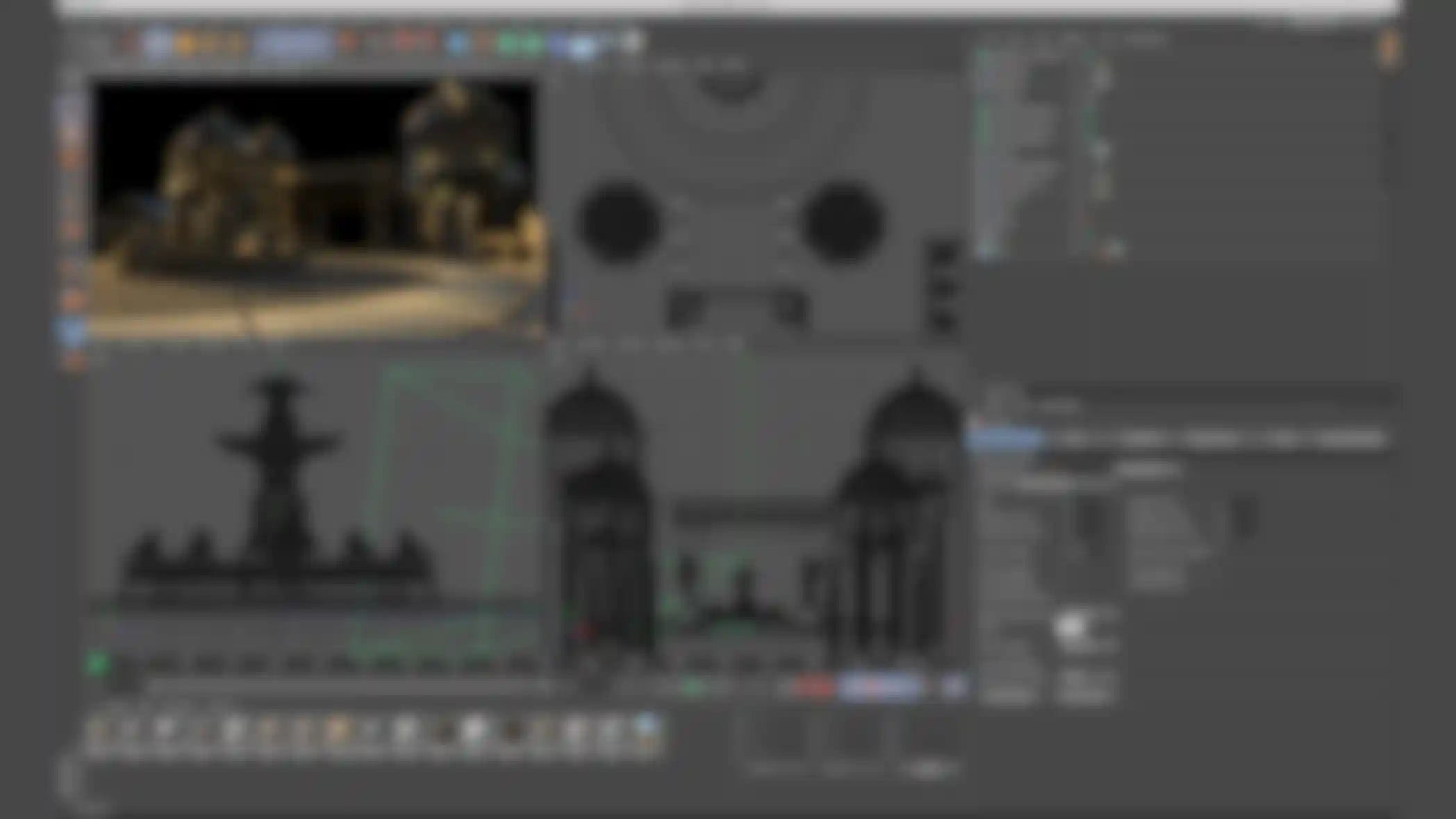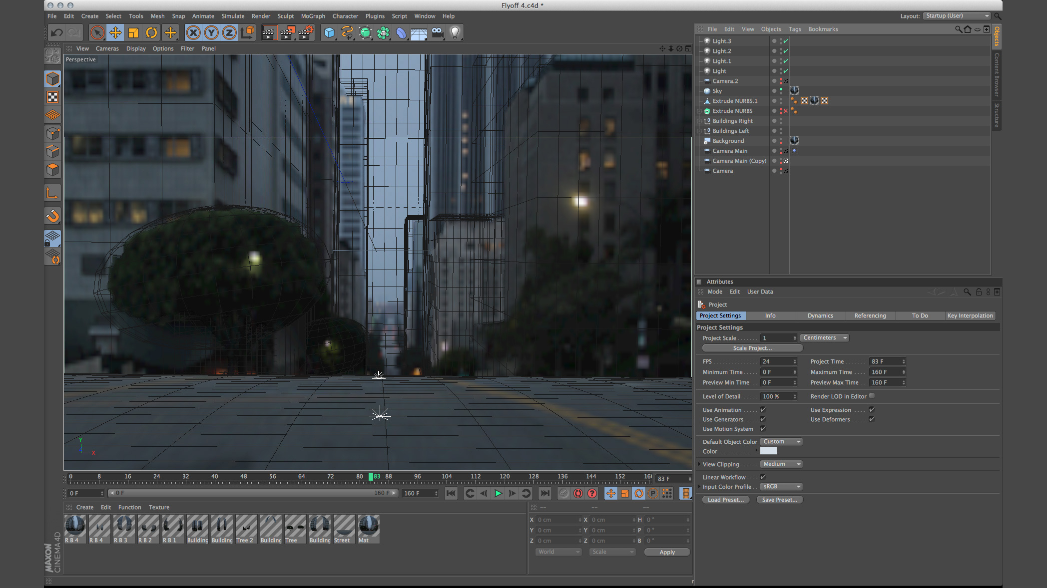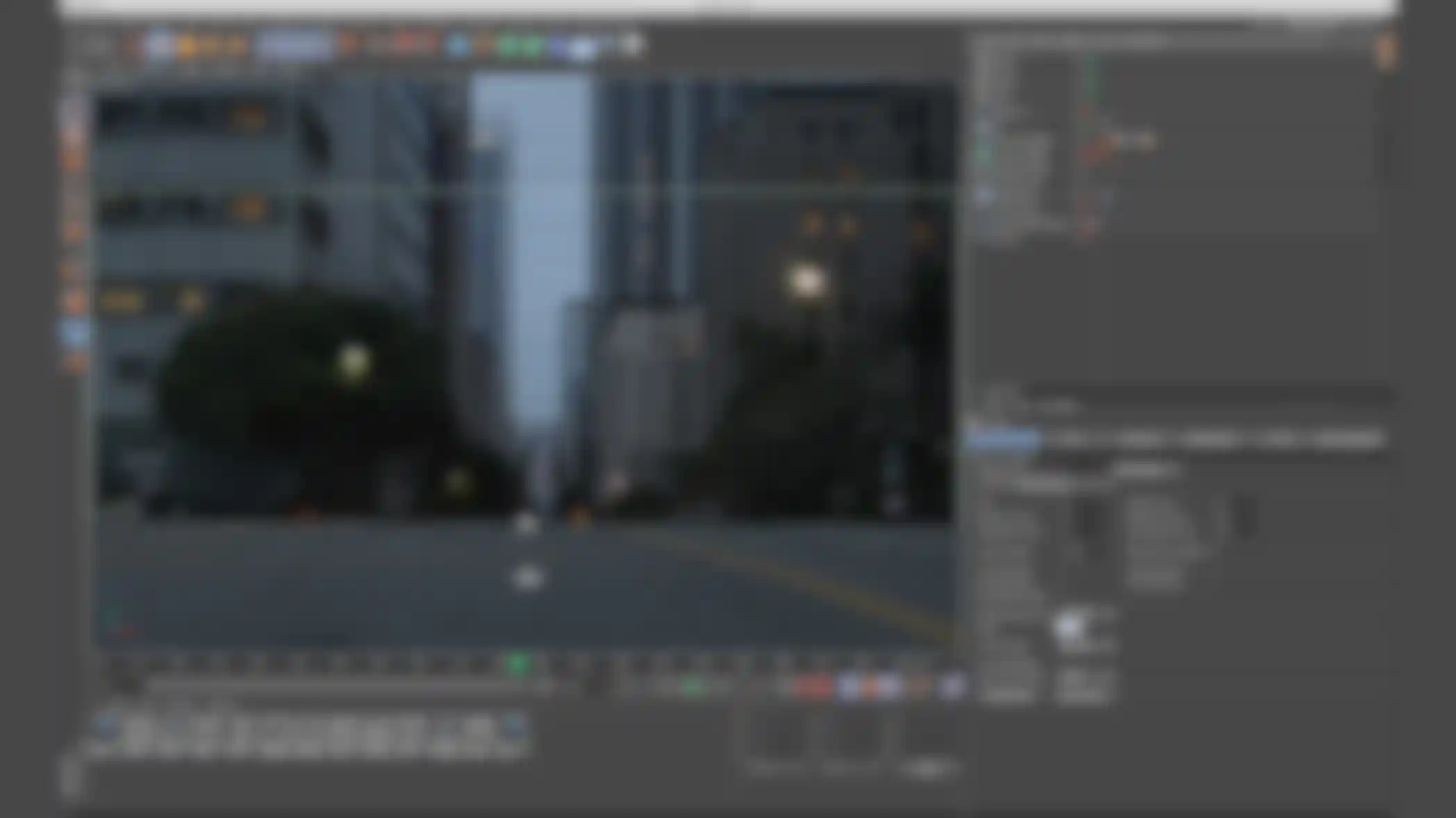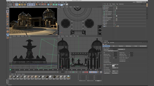"건물들 모델링은 이 프로젝트에서 아주 재미있지만 힘든 부분이었습니다", Balcomb의 말입니다. "왜냐하면 배경 모델들이 매우 디테일하고 GI를 이용하여 렌더링하기에 매우 많은 시간이 소요되기 때문입니다." 먼저 이들 요소들을 모델링하도록 함으로써 Rainfall은 미리 Cinema 4D의 카메라를 이용하여 가장 흥미로운 앵글을 찾을 수 있었습니다. 어떤 장면들은 촬영 전에 미리 렌더링이 되어 실제 촬영에서의 라이팅과 배우들의 위치에 대한 레퍼런스로 사용할 수 있었습니다.