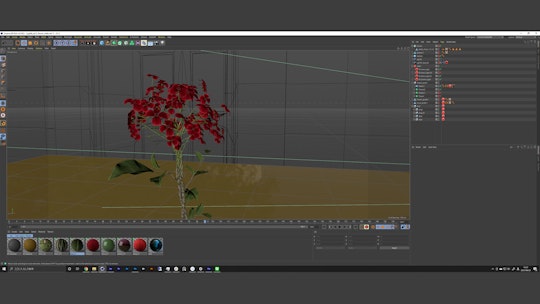 Nigo: For the flower, I got a model from Alembic. I oversaw the arrangement of the leaves and so on. But when I tried to use the actual model in the scene, the shape of the flower turned out to be too round. So I changed the layout and rematched the lighting. I also did many separate passes. To create a diffuse effect, I adjusted the blue ambient light, the orange light, and so on, to make them easier to edit. I used quite a few of them as materials.